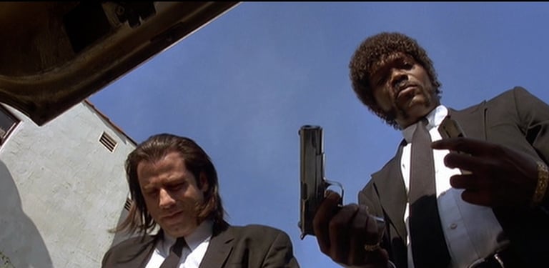 One of the most studied aspects of Tarantino’s work: the dialogue. Long, seemingly trivial conversations loaded with rhythm, intention, and character. They entertain while building deep characterization.